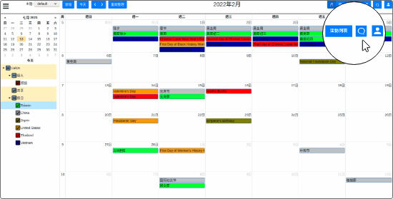 在操作行事曆時,系統提供即時通訊和郵件的快速連接,搭配 Single-Sign-On 機制,不需要重新輸入帳號密碼也能直接進入另一個系統。