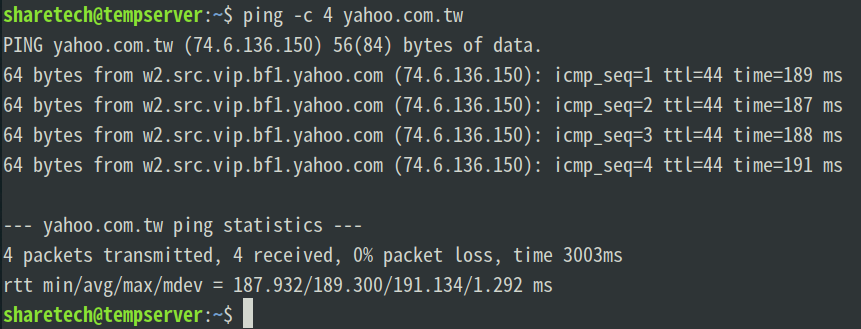 ping -c yahoo.com.tw
