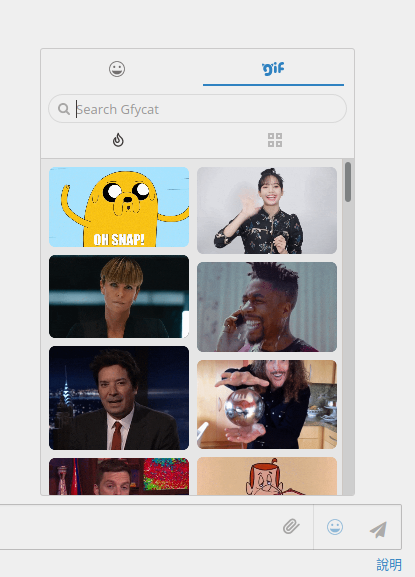 啟用 GIF 選擇器: 允許使用者從繪文字選擇器經由 Gfycat 整合選取 GIF。