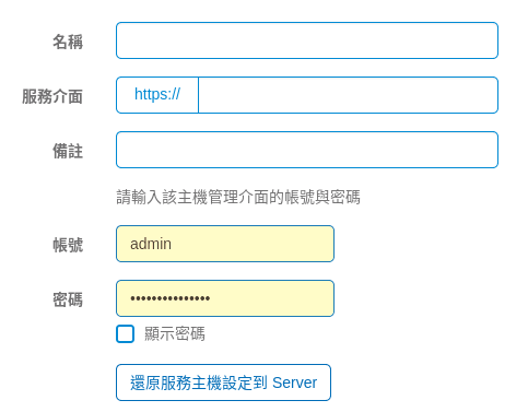 密碼: 目標主機的管理介面密碼。