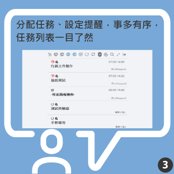 異地、分流辦公,沒問題,任務指派與管理功能幫你追蹤進度