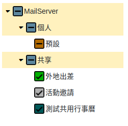 4. 而被分享此行事曆權限的使用者會看到該行事曆群組位在共享區底下。![]()
